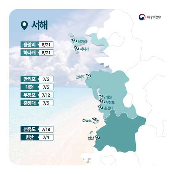 해양수산부가 발표한 ‘2025 주요 해수욕장 개장 지도’ 기준으로, 지역별 주요 해변의 오픈 일자를 정리했습니다. 방문하고 싶은 해수욕장의 개장일을 확인하고, 알찬 여행 일정을 계획해 보세요.